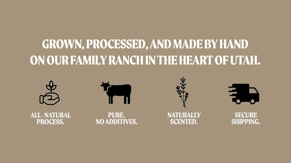 Our handmade tallow is grown from our own cattle on our family ranch near Ephriam, Utah.